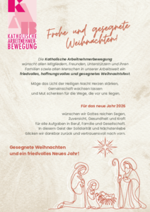 WeiterlesenDie Katholische Arbeitnehmerbewegung wünscht allen Mitgliedern, Freunden, Unterstützern und ihren Familien sowie allen Menschen in unserer…