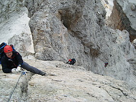 Bitte Ausrüstung, Klettergurt und Bergsteigerhelm nicht vergessen!