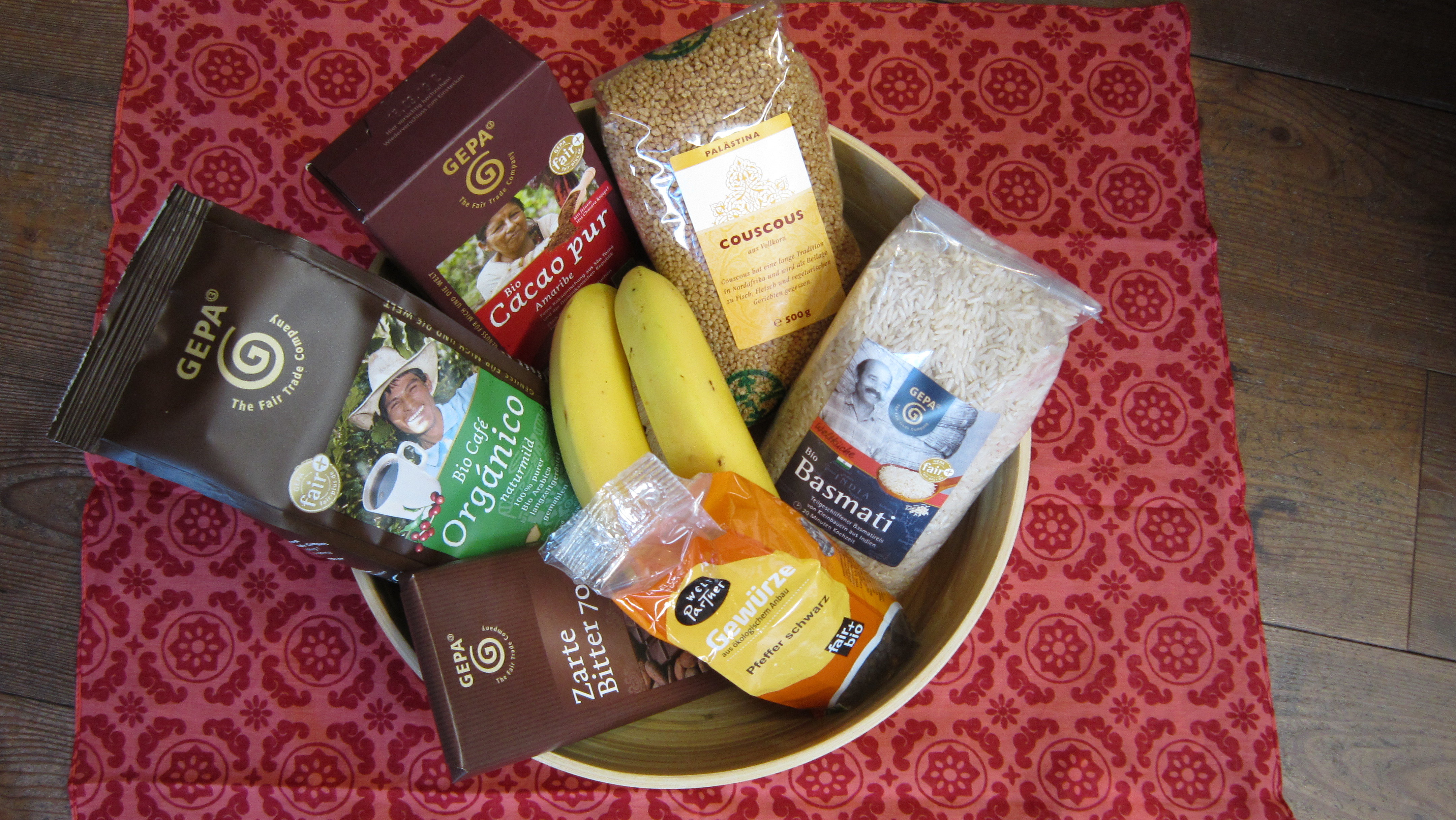 Zum Beispiel mit Kaffee, Schokolade, Pfeffer und Vanille aus Madagaskar, unserem Projektland (Unsere Weltläden beraten uns sicher gerne bei der Zusammenstellung der Lebensmittel).