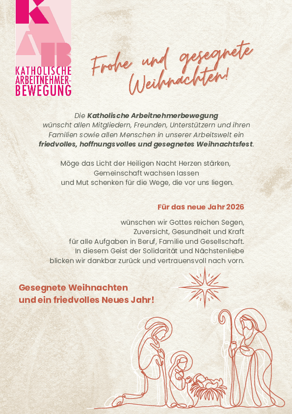 Die Katholische Arbeitnehmerbewegung wünscht allen Mitgliedern, Freunden, Unterstützern und ihren